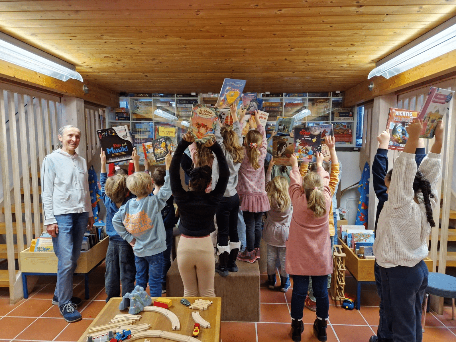 Die 1. Klassen durften zudem die Bücherei St. Lantpert an der Kirche besuchen. Dort führte Frau Riller die Kinder durch die Räume, erklärte die Ausleihe und zeigte ihnen die vielen Bereiche der Bücherei. Anschließend konnten die Erstleser in der Kinderecke stöbern.